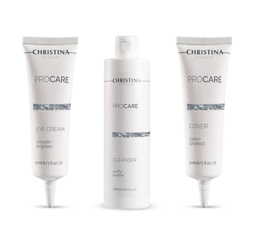 As part of a daily routine of skin care and skin rejuvenation, ProCare products complement all Christina Clinical lines and provide efficient and prolonged solutions to a wide range of skin conditions and needs. The active ingredients cleanse and soothe the skin, while promoting cell regeneration and improving skin texture for a vibrant, healthy appearance over time.