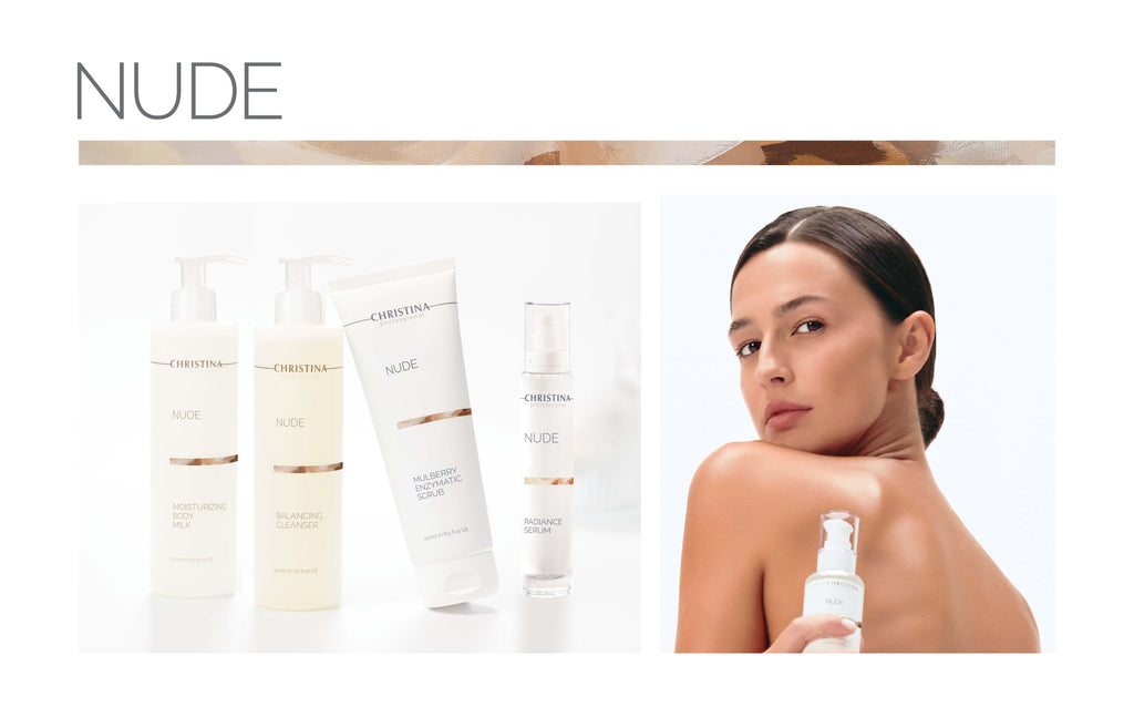 The NUDE Collection is a luxurious body care line designed to restore, refresh, and reveal naturally radiant skin with active botanicals, superfoods, and advanced hydration.